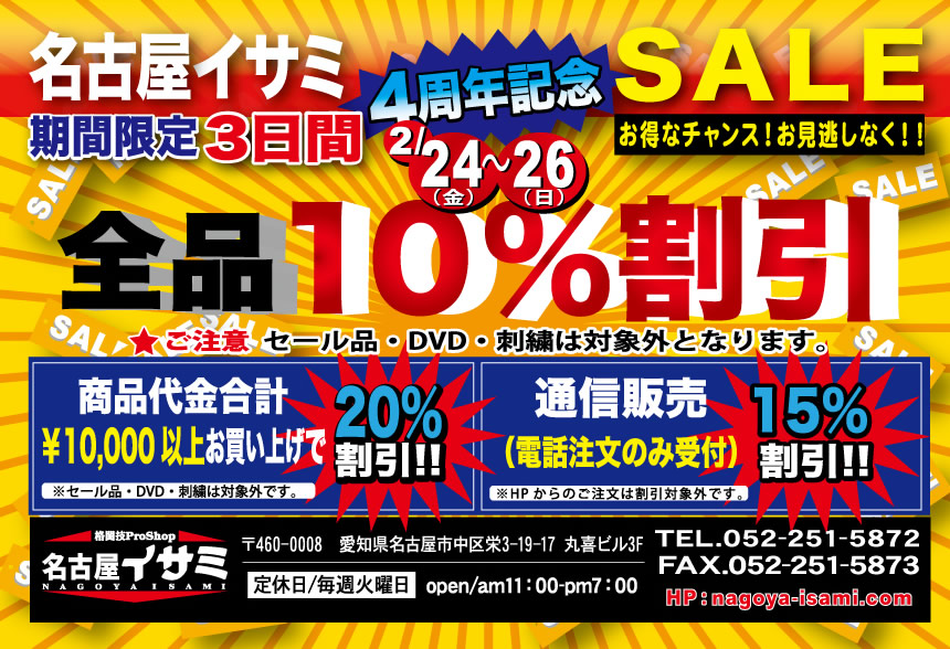 通信販売は名古屋イサミへの電話注文のみ受け付け可能となっております。